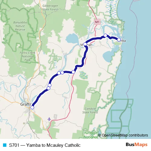 Click here to view the nearest S701 - Yamba to Mcauley Catholic bus stop.