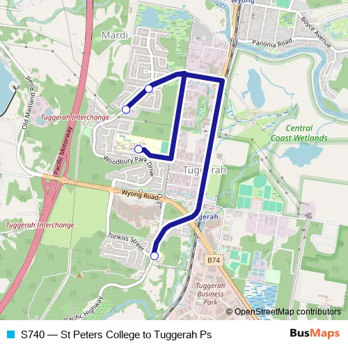Click here to view the nearest S740 - St Peters College to Tuggerah Ps bus stop.