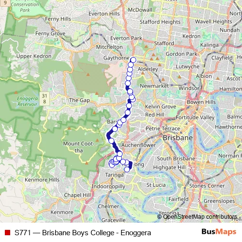 Bus S771 - Brisbane Boys College - Enoggera Schedule in Brisbane