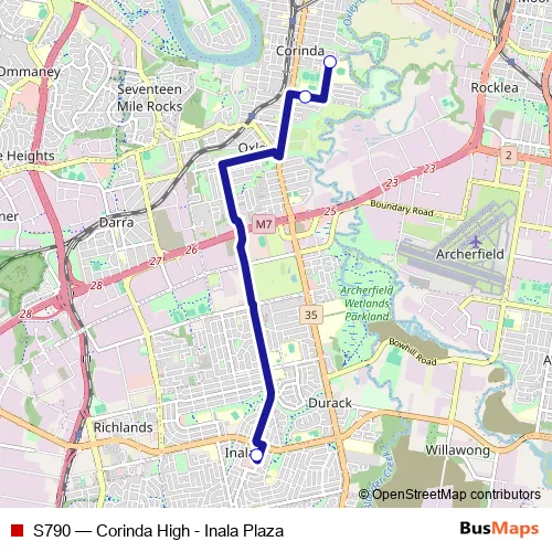 The first stop of the S790 bus route is Pratten St at Corinda High School, stop 63 and the last stop is Inala Plaza. S790 (Corinda High - Inala Plaza) is operational during entre semana.