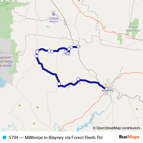 Bus S794 - Millthorpe to Blayney via Forest Reefs Rd in Millthorpe: Stops & Timetable