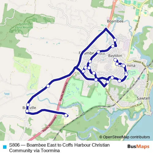 Bus S806 - Boambee East to Coffs Harbour Christian Community via Toormina: Full Schedule in Toormina