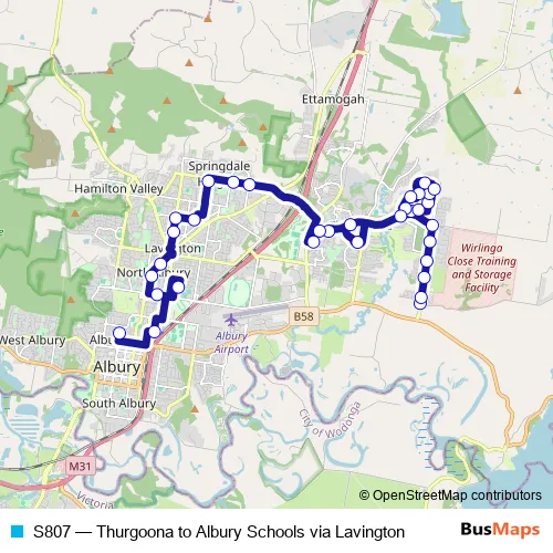 Click here to view the nearest S807 - Thurgoona to Albury Schools via Lavington bus stop.