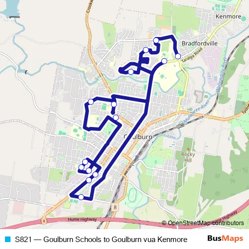 Click here to view the nearest S821 - Goulburn Schools to Goulburn vua Kenmore bus stop.