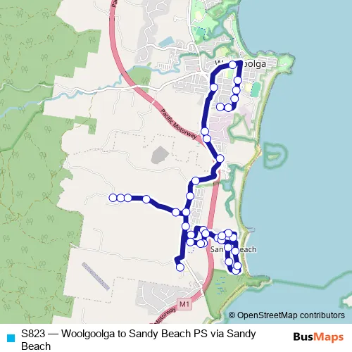 Bus S823 - Woolgoolga to Sandy Beach PS via Sandy Beach in Sandy Beach: Stops & Timetable
