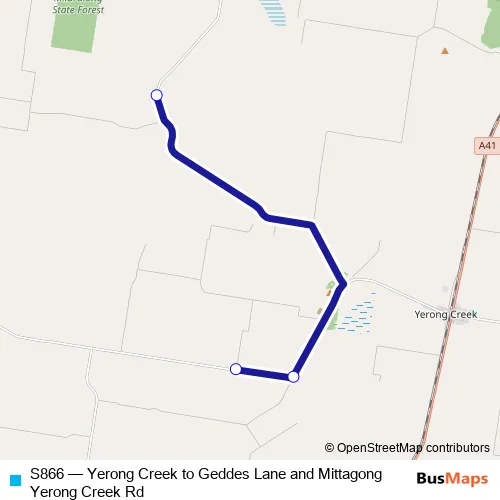 S866 Bus - Yerong Creek to Geddes Lane and Mittagong Yerong Creek Rd