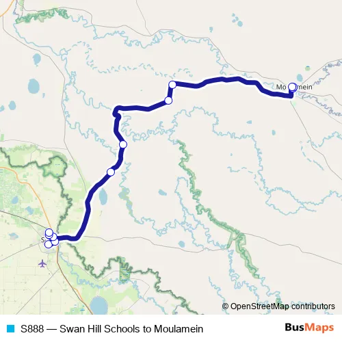 Click here to view the nearest S888 - Swan Hill Schools to Moulamein bus stop.