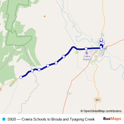 Click here to view the nearest S920 - Cowra Schools to Broula and Tyagong Creek bus stop.