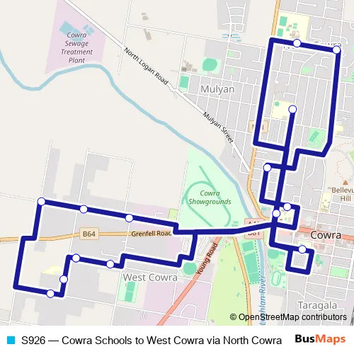 Bus S926 - Cowra Schools to West Cowra via North Cowra in Cowra: Stops & Timetable