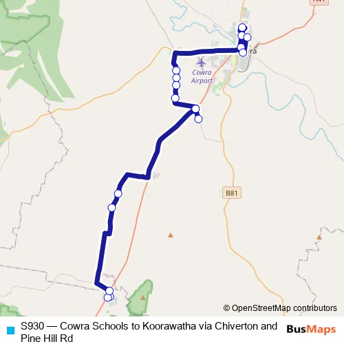 Bus S930 - Cowra Schools to Koorawatha via Chiverton and Pine Hill Rd Schedule in Cowra
