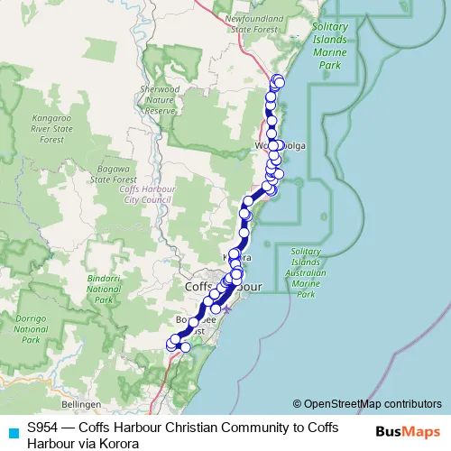 Bus S954 - Coffs Harbour Christian Community to Coffs Harbour via Korora: Full Schedule in Coffs Harbour