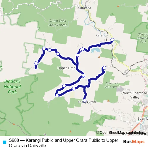 Bus S988 - Karangi Public and Upper Orara Public to Upper Orara via Dairyville: Full Schedule in Upper Orara