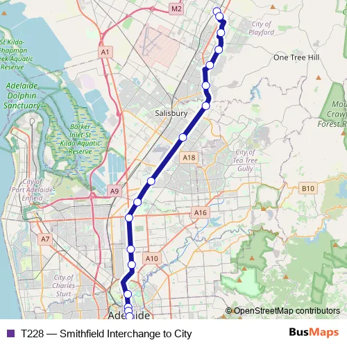 Bus T228 - Smithfield Interchange to City: Full Schedule in Adelaide
