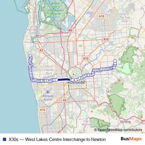 Bus X30s - West Lakes Centre Interchange to Newton in Adelaide: Stops & Timetable
