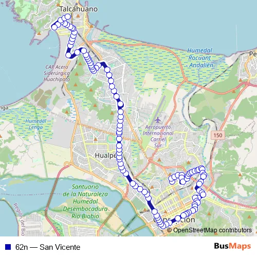 See why over 2 million users trust and consider busmaps.com as the best public transport website. busmaps gives you Concepcion Buses suggested routes, real-time bus tracker, line route maps in Concepcion, and helps to find the closest 62n bus stops near you. No internet available? Download an offline PDF map and bus schedule for the 62n bus to take on your trip.
