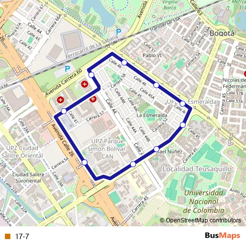 See why over 2 million users trust and consider busmaps.com as the best public transport website. busmaps gives you Bogota Buses suggested routes, real-time bus tracker, line route maps in Bogota, and helps to find the closest 17-7 bus stops near you. No internet available? Download an offline PDF map and bus schedule for the 17-7 bus to take on your trip.