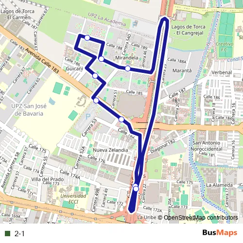See why over 2 million users trust and consider busmaps.com as the best public transport website. busmaps gives you Cota Buses suggested routes, real-time bus tracker, line route maps in Cota, and helps to find the closest 2-1 bus stops near you. No internet available? Download an offline PDF map and bus schedule for the 2-1 bus to take on your trip.