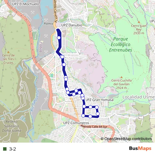 See why over 2 million users trust and consider busmaps.com as the best public transport website. busmaps gives you Bogota Buses suggested routes, real-time bus tracker, line route maps in Bogota, and helps to find the closest 3-2 bus stops near you. No internet available? Download an offline PDF map and bus schedule for the 3-2 bus to take on your trip.