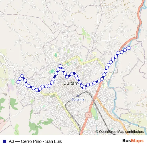 See why over 2 million users trust and consider busmaps.com as the best public transport website. busmaps gives you Duitama Buses suggested routes, real-time bus tracker, line route maps in Duitama, and helps to find the closest A3 bus stops near you. No internet available? Download an offline PDF map and bus schedule for the A3 bus to take on your trip.