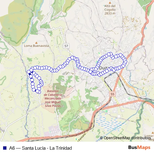 See why over 2 million users trust and consider busmaps.com as the best public transport website. busmaps gives you Duitama Buses suggested routes, real-time bus tracker, line route maps in Duitama, and helps to find the closest A6 bus stops near you. No internet available? Download an offline PDF map and bus schedule for the A6 bus to take on your trip.
