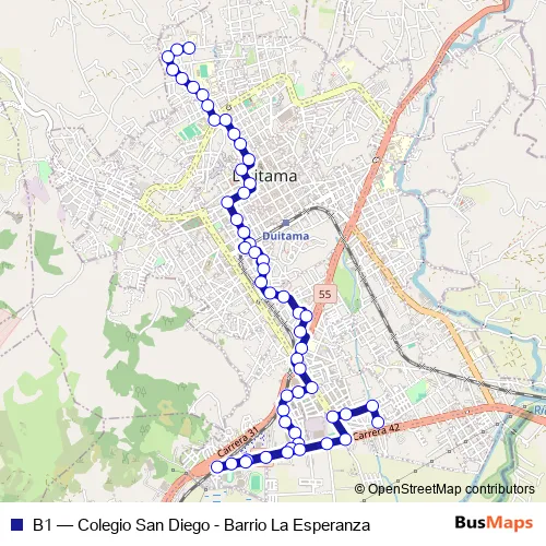 Bus B1 - Colegio San Diego - Barrio La Esperanza: Full Schedule in Duitama