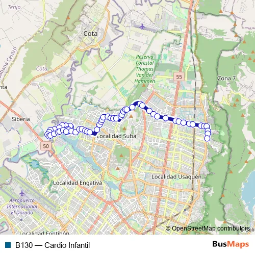 See why over 2 million users trust and consider busmaps.com as the best public transport website. busmaps gives you Cota Buses suggested routes, real-time bus tracker, line route maps in Cota, and helps to find the closest B130 bus stops near you. No internet available? Download an offline PDF map and bus schedule for the B130 bus to take on your trip.
