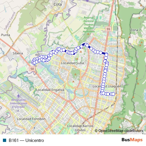See why over 2 million users trust and consider busmaps.com as the best public transport website. busmaps gives you Cota Buses suggested routes, real-time bus tracker, line route maps in Cota, and helps to find the closest B161 bus stops near you. No internet available? Download an offline PDF map and bus schedule for the B161 bus to take on your trip.