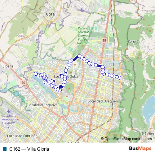 See why over 2 million users trust and consider busmaps.com as the best public transport website. busmaps gives you Bogota Buses suggested routes, real-time bus tracker, line route maps in Bogota, and helps to find the closest C162 bus stops near you. No internet available? Download an offline PDF map and bus schedule for the C162 bus to take on your trip.