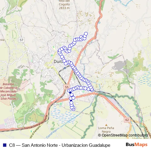 Bus C8 - San Antonio Norte - Urbanizacion Guadalupe: Full Schedule in Duitama
