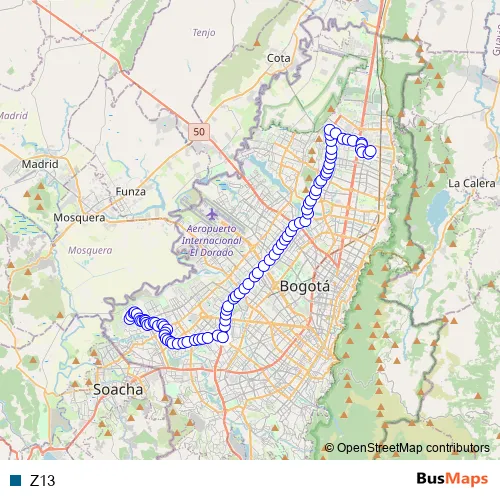 See why over 2 million users trust and consider busmaps.com as the best public transport website. busmaps gives you Bogota Buses suggested routes, real-time bus tracker, line route maps in Bogota, and helps to find the closest Z13 bus stops near you. No internet available? Download an offline PDF map and bus schedule for the Z13 bus to take on your trip.
