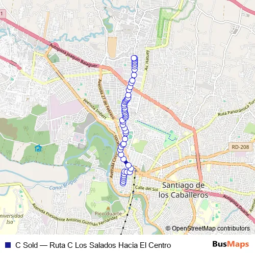 See why over 2 million users trust and consider busmaps.com as the best public transport website. busmaps gives you Santiago de los Caballeros Buses suggested routes, real-time bus tracker, line route maps in Santiago de los Caballeros, and helps to find the closest C Sold bus stops near you. No internet available? Download an offline PDF map and bus schedule for the C Sold bus to take on your trip.