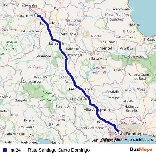See why over 2 million users trust and consider busmaps.com as the best public transport website. busmaps gives you Santiago de los Caballeros Buses suggested routes, real-time bus tracker, line route maps in Santiago de los Caballeros, and helps to find the closest Int 24 bus stops near you. No internet available? Download an offline PDF map and bus schedule for the Int 24 bus to take on your trip.