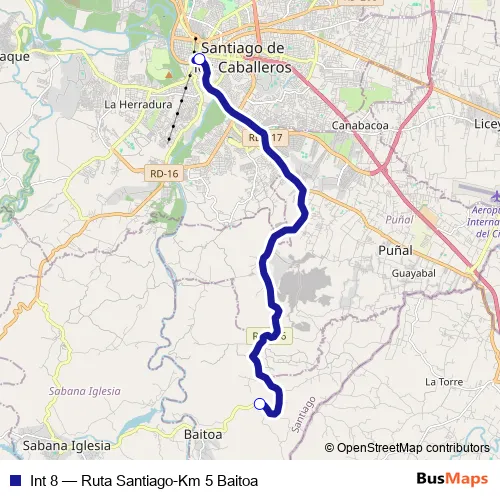 Click here to view the nearest Int 8 - Ruta Santiago-Km 5 Baitoa bus stop.