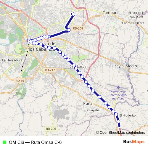 See why over 2 million users trust and consider busmaps.com as the best public transport website. busmaps gives you Santiago de los Caballeros Buses suggested routes, real-time bus tracker, line route maps in Santiago de los Caballeros, and helps to find the closest OM Ci6 bus stops near you. No internet available? Download an offline PDF map and bus schedule for the OM Ci6 bus to take on your trip.