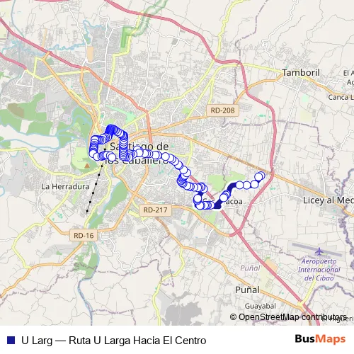 Bus U Larg - Ruta U Larga Hacia El Centro: Full Schedule in Santiago de los Caballeros