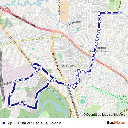 See why over 2 million users trust and consider busmaps.com as the best public transport website. busmaps gives you Santiago de los Caballeros Buses suggested routes, real-time bus tracker, line route maps in Santiago de los Caballeros, and helps to find the closest Zp bus stops near you. No internet available? Download an offline PDF map and bus schedule for the Zp bus to take on your trip.