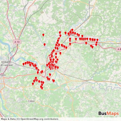 Transit Data for France by Calibus (Libourne) with Stops on Map