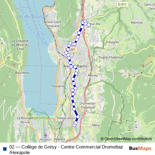 Bus 02 - Collège de Grésy - Centre Commercial Drumettaz /Hexapole: Full Schedule in Aix-les-Bains
