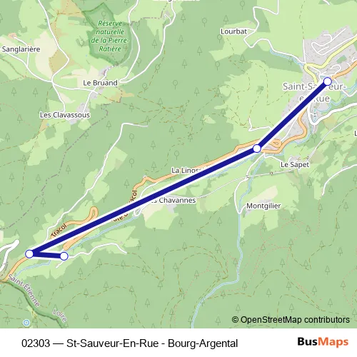 See why over 2 million users trust and consider busmaps.com as the best public transport website. busmaps gives you Saint-Sauveur-en-Rue Buses suggested routes, real-time bus tracker, line route maps in Saint-Sauveur-en-Rue, and helps to find the closest 02303 bus stops near you. No internet available? Download an offline PDF map and bus schedule for the 02303 bus to take on your trip.