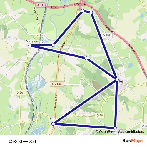 See why over 2 million users trust and consider busmaps.com as the best public transport website. busmaps gives you Vallon-en-Sully Buses suggested routes, real-time bus tracker, line route maps in Vallon-en-Sully, and helps to find the closest 03-253 bus stops near you. No internet available? Download an offline PDF map and bus schedule for the 03-253 bus to take on your trip.