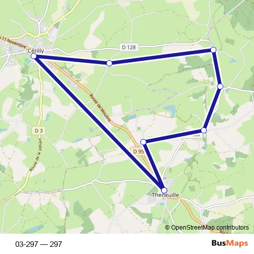 See why over 2 million users trust and consider busmaps.com as the best public transport website. busmaps gives you Cerilly Buses suggested routes, real-time bus tracker, line route maps in Cerilly, and helps to find the closest 03-297 bus stops near you. No internet available? Download an offline PDF map and bus schedule for the 03-297 bus to take on your trip.