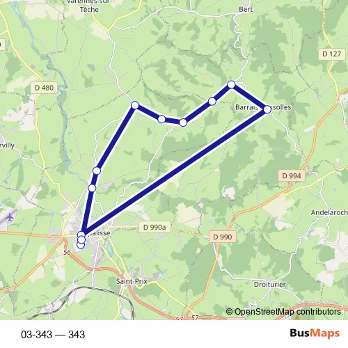 The first stop of the 03-343 bus route is Collège and the last stop is Ecole Maternelle. 03-343 (343) is operational during todos los días.