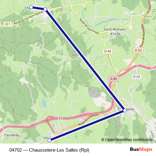 Bus 04702 - Chaussetere-Les Salles (Rpi) in Saint-Just-en-Chevalet: Stops & Timetable