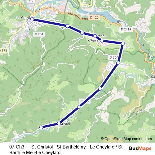 Bus 07-Ch3 - St-Christol - St-Barthélémy - Le Cheylard / St Barth le Meil-Le Cheylard: Full Schedule in Le Cheylard
