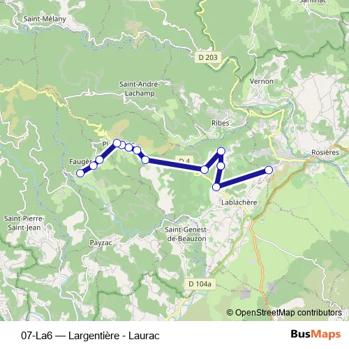 See why over 2 million users trust and consider busmaps.com as the best public transport website. busmaps gives you Largentiere Buses suggested routes, real-time bus tracker, line route maps in Largentiere, and helps to find the closest 07-La6 bus stops near you. No internet available? Download an offline PDF map and bus schedule for the 07-La6 bus to take on your trip.