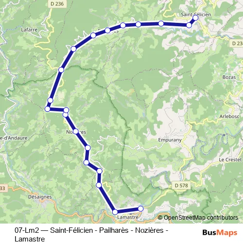 Click here to view the nearest 07-Lm2 - Saint-Félicien - Pailharès - Nozières - Lamastre bus stop.