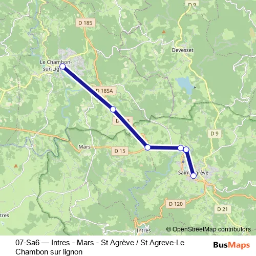 See why over 2 million users trust and consider busmaps.com as the best public transport website. busmaps gives you Saint-Agreve Buses suggested routes, real-time bus tracker, line route maps in Saint-Agreve, and helps to find the closest 07-Sa6 bus stops near you. No internet available? Download an offline PDF map and bus schedule for the 07-Sa6 bus to take on your trip.