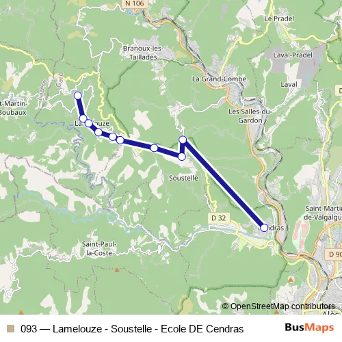 Click here to view the nearest 093 - Lamelouze - Soustelle - Ecole DE Cendras bus stop.