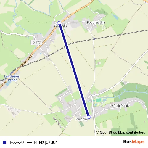 The first stop of the 1-22-201 bus route is Pende - Ecole Mairie and the last stop is Pende - Sallenelle - Ecole. 1-22-201 (1434z|0736r) is operational during todos los días.