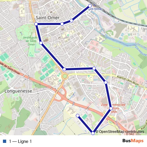 Bus 1 - Ligne 1 in Saint-Omer: Stops & Timetable
